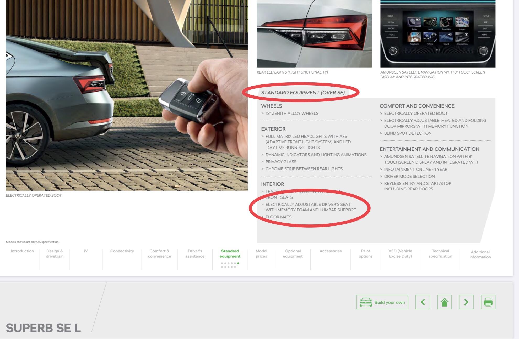 Skoda’s brochure for the SEL states that it has electric front seats as standard (see pic) but when you go to the configurator, it asks for £620! I’ll sort with the dealer when I go in, in a few months but does anyone here know for sure?