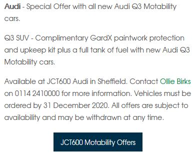 Reply To: Audi Q3 December 12, 2020 at 9:20 pm #132040 BrydoDon’t know if this is still available but worth a try. Its not much but better than nothing.