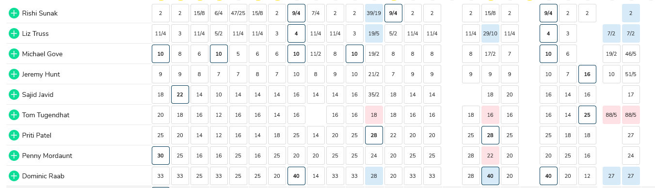 Odds on the next leader of the Tory party.