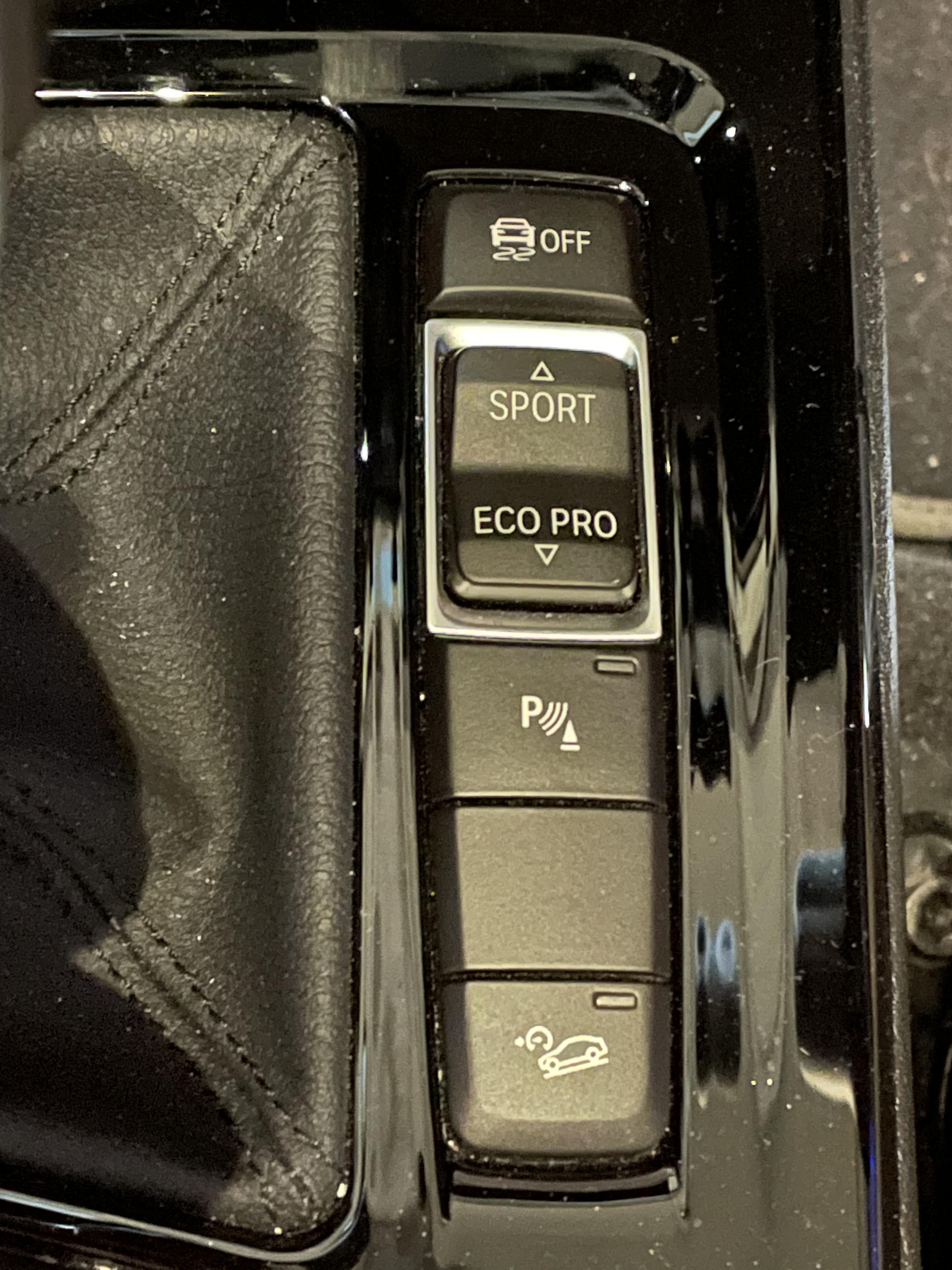 Hi Rachel. Your X1 should have Park Assist, as it’s standard on all X1’s. It’s activated by pressing the P with radar button, which is next to the eco-pro button (see photo). I hadn’t heard that it had been affected by the chip shortage (the only issue we had was that we couldn’t get the Harman/kardon upgrade which, in the end, didn’t matter) so fingers crossed your car has it. We’ve got the reversing camera, but you’re right that only comes as an option (in a pack with other features that we also wanted – thankfully).