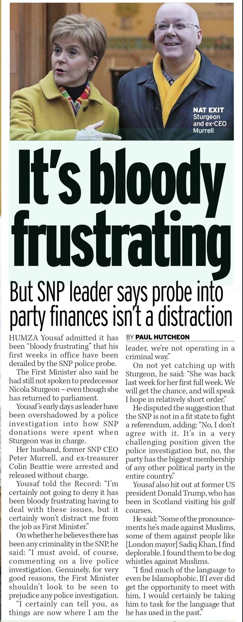April 27, 2023 at 9:41 am #220223April 27, 2023 at 10:10 am #220226With all thats gone on in the party. I expect the SNP will find it extremely difficult finding any “professional” body. Any independant professional accountant who may be interested, will first speak (as they do) with SNP’s previous accountants and find out why they stopped doing the SNP’s accounts. Also with a “live” police investigation still very much ongoing, its highly unlikely any professional body will work or put their name to doing so. The only slim chance the SNP have of getting a professional auditor is with severe terms attached ad of a much higher costing. Even so the chances of this happening is next to zero, due to the high risk of their reputation…!