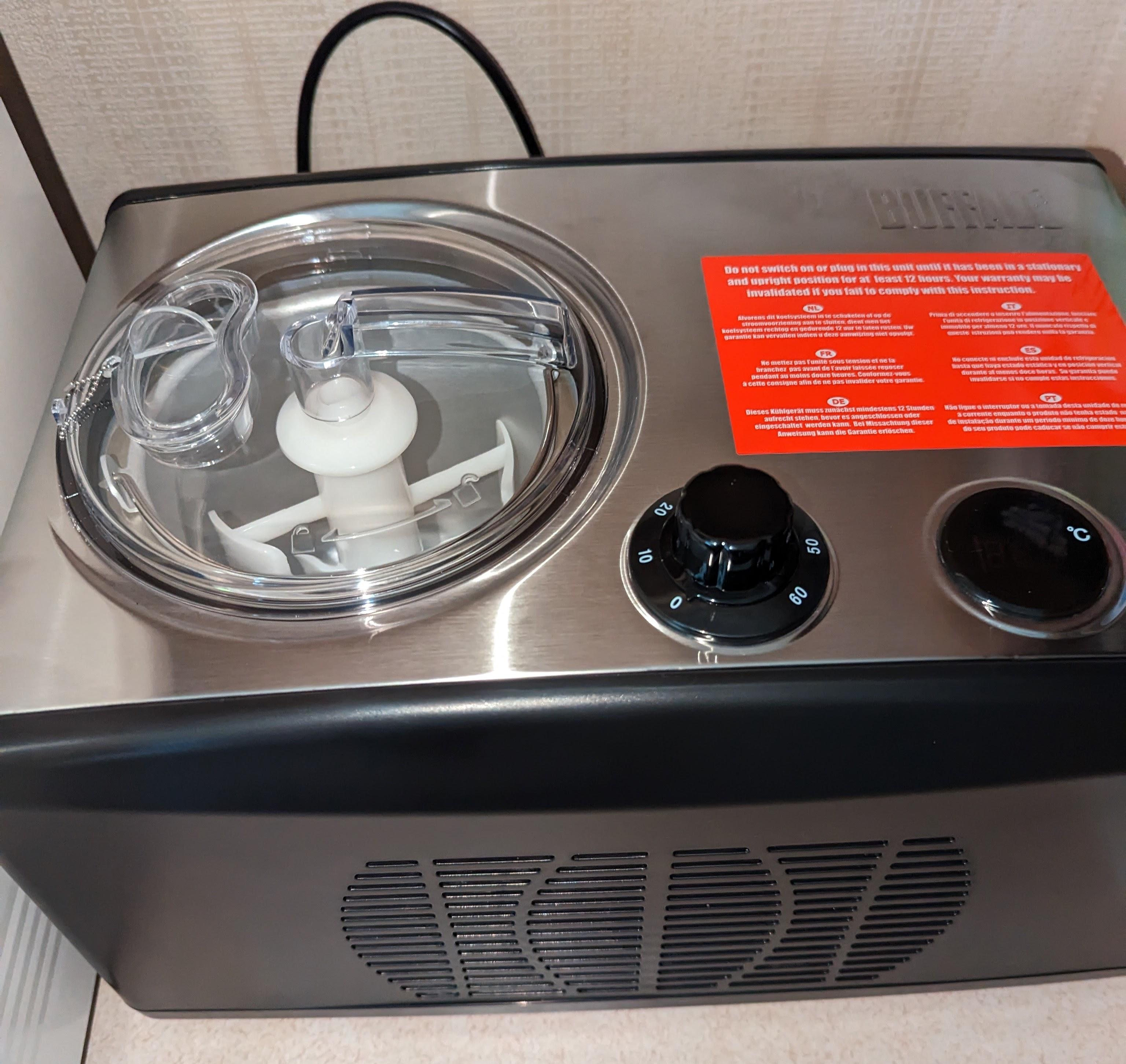 managed to get the icecream maker out of its box and found a spot for it. will let it sit til tomorrow at least to settle. it has its own freezer in it. i like ices but being lactose intolerent means i can pay for it, so gonna tr making lactose free ice cream lol