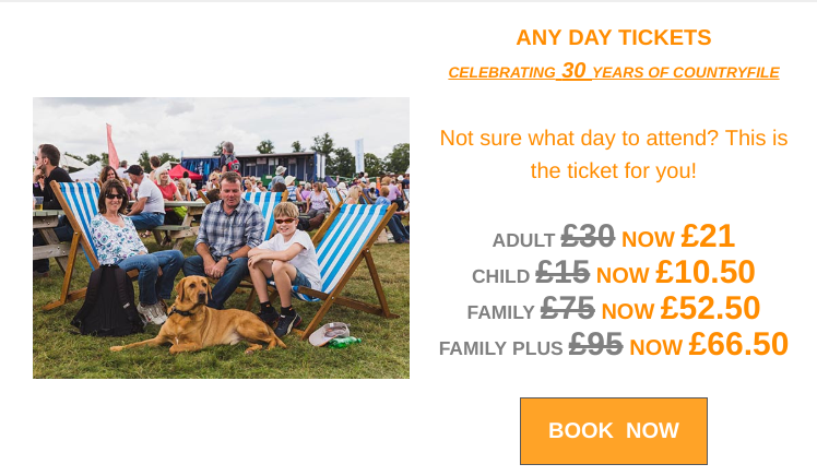 I went to the CountryFile Live show at Blenheim Palace last year, won the tickets on Facebook and really enjoyed the day out. Lots of demonstrations, though more geared for dog owners i felt, but still very enjoyable. Lots of food outlets, but to be honest they were not cheap.