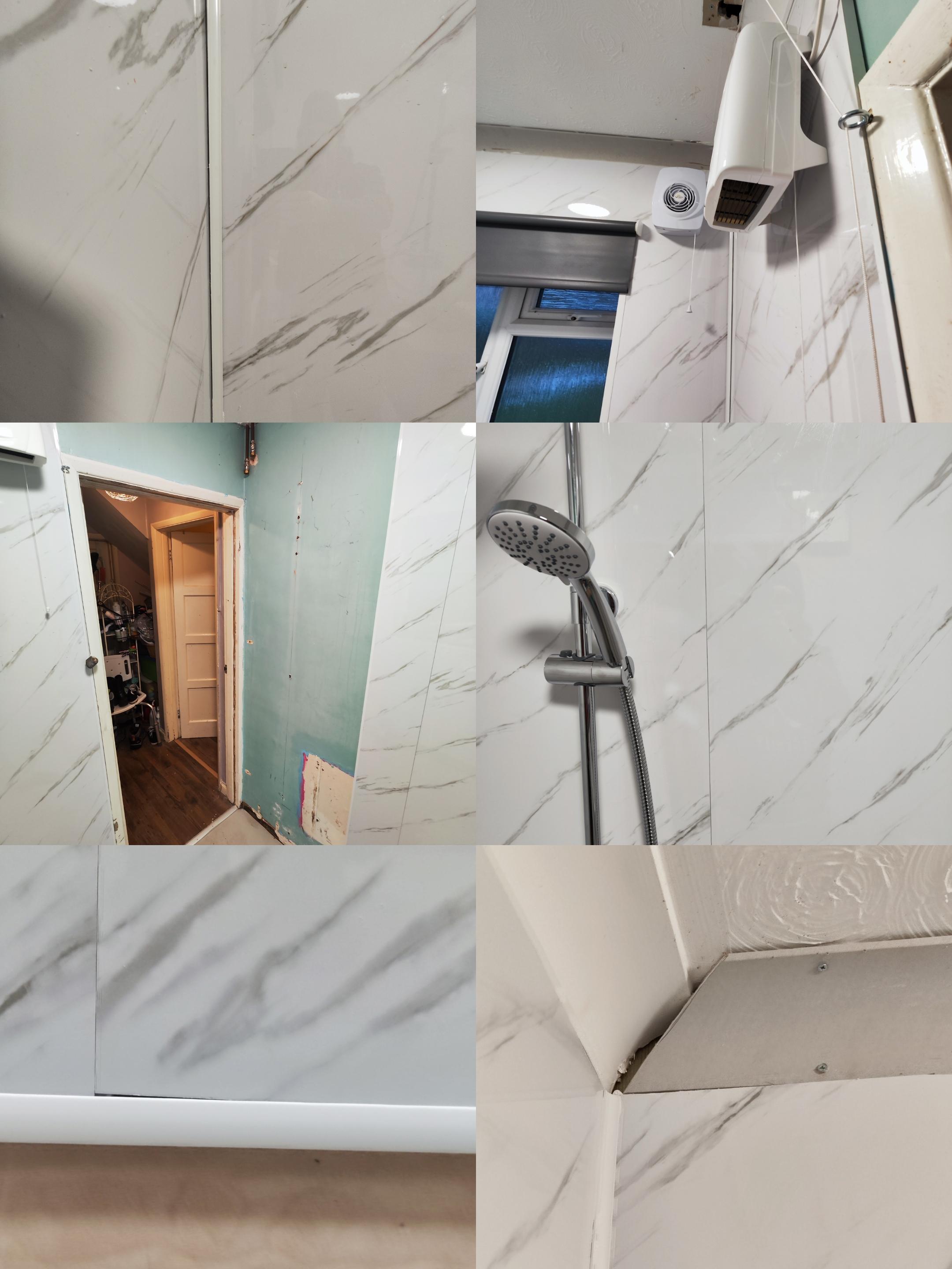 10 days with no bathroom luckily our toilet is separate as this is an additional loo. Workmanship is awful you can see a gap between every panel join where he hasn’t gotten them together properly Inc one right behind the shower.