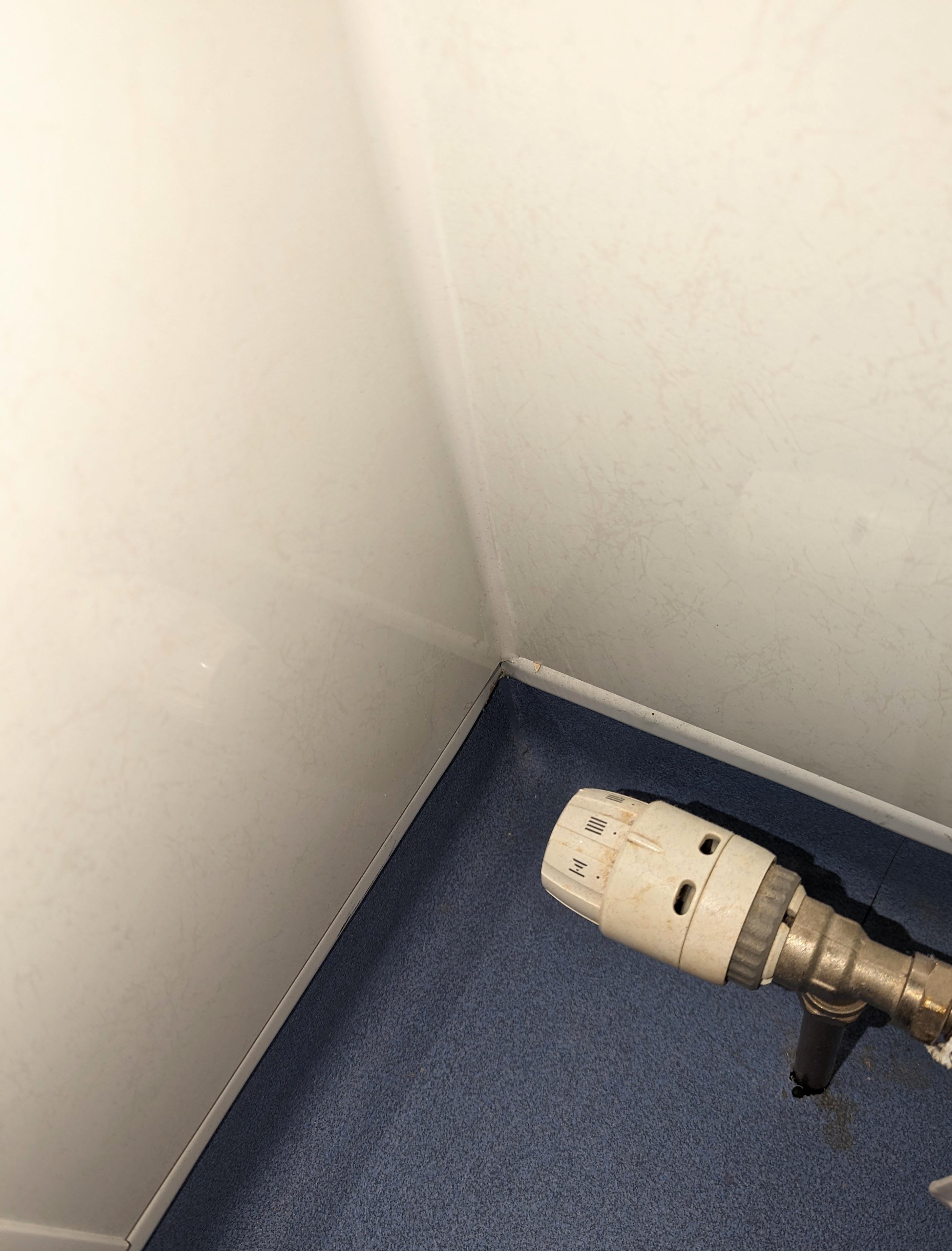February 12, 2024 at 1:47 pm #258131Even the white corner beading on the panelling isn’t fitted right – just a blob of silicone here and there by the looks of it!