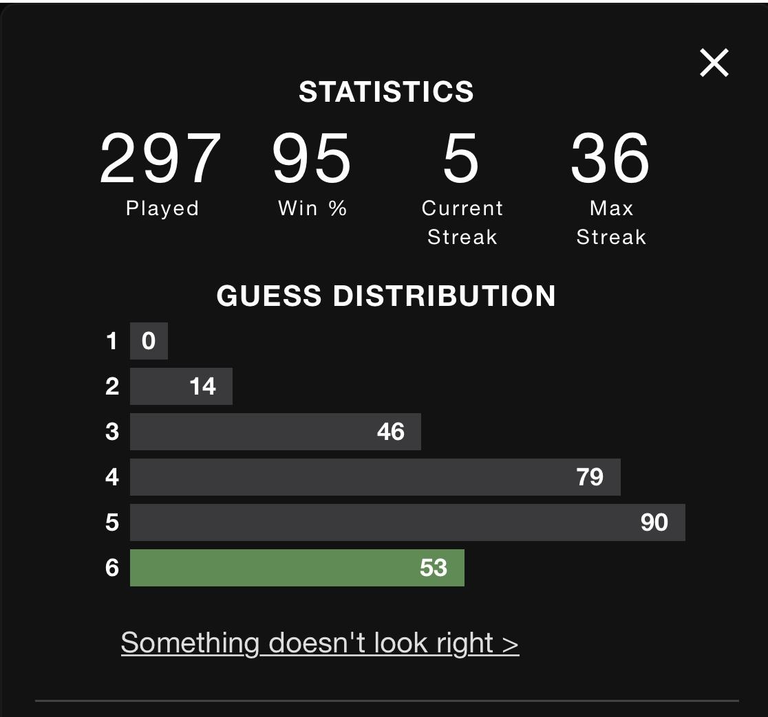 I’ve been doing it every day for almost a year now. Here’s a screenshot of my stats, I’ve got it in 2 guesses 14 times.