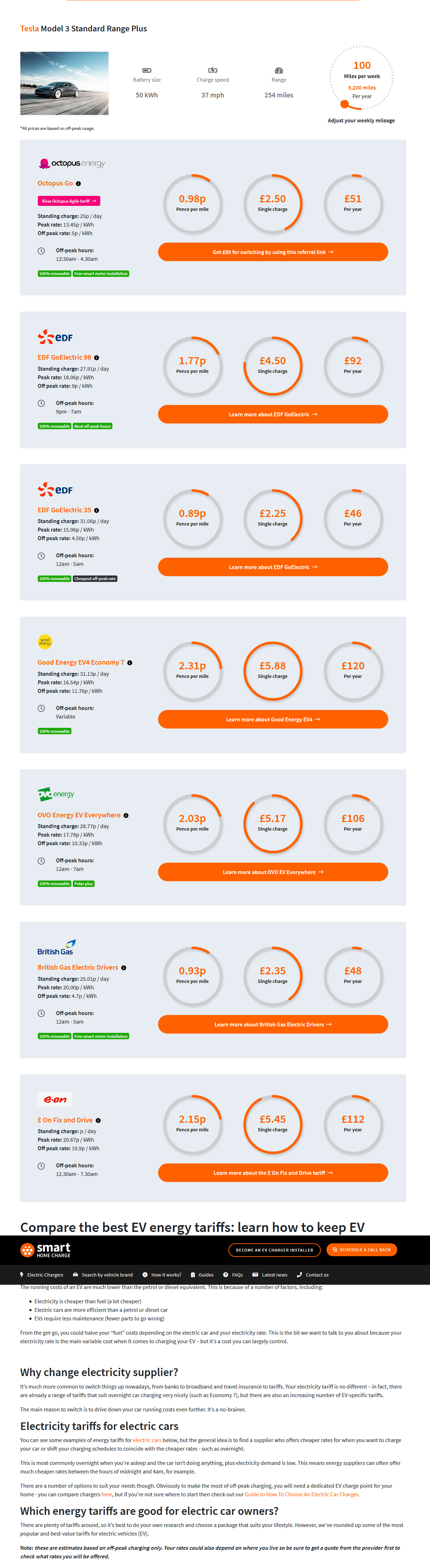 <p style=”text-align: left;”>Also there is huge criticism in online forums with EDF and similar companies promising an EV tariff with cheap evening rates but it is reliant on getting a smart 2 compatible meter – which in some parts of the country is years away. So some of the big players advertise a great EV rate but in reality you’ll be lucky to get on them. There are even cases were the smart 2 meters are fitted but are not a suitable specifications of the provider (EDF), So renders them useless. Your them stuck onto an expensive standard rate until this is resolved and in many cases it is never resolved.</p>
