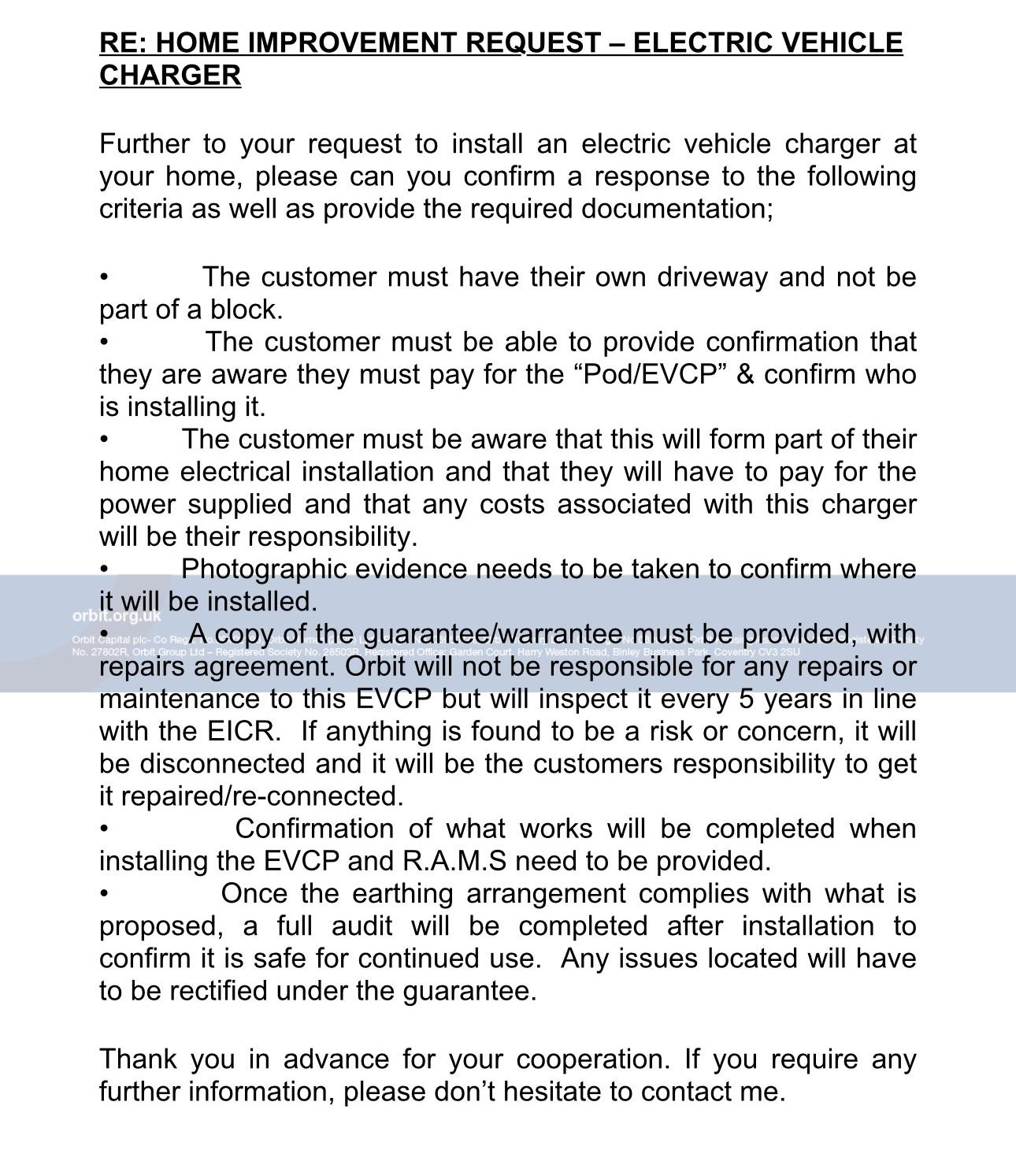 Can anyone help I’m trying to seek permission from my housing association for my EV charger. They are asking for all this information even tho I have provided who is doing the install and contact details etc etc  anyone had anything similar and got anything I can send to them with the info etc