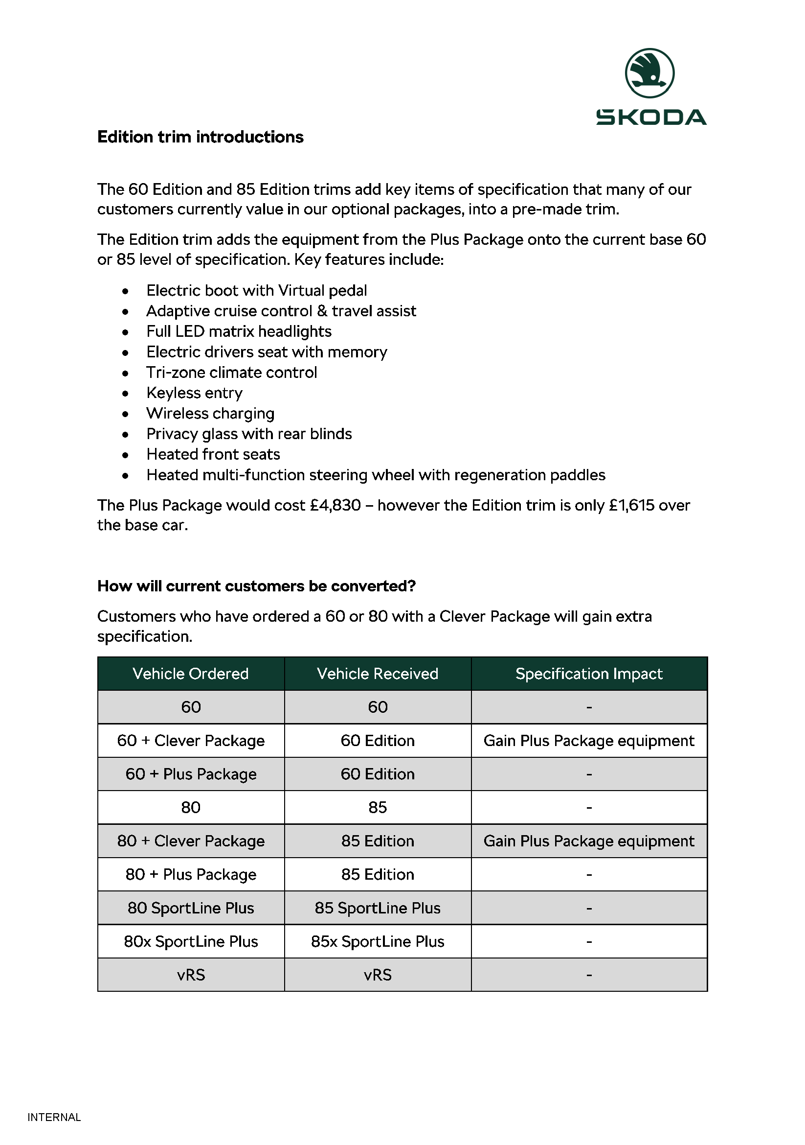 Maybe the documents relates to orders that were placed before it was issued? Im not fussed either way as the only difference between the 85SL and 85xSL is the front motors which I don’t want/need. I ordered October 25th and the dealer has said on Skoda system its showing as a 85xSL even specified 4×4.
