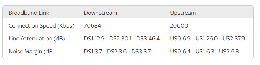Saying that, I see BT only offer packages to 50mbps for me, yet all the rest offer up to 70mbps and that’s what i’m getting to the router now… i may query that with BT on the ol’ live chat.