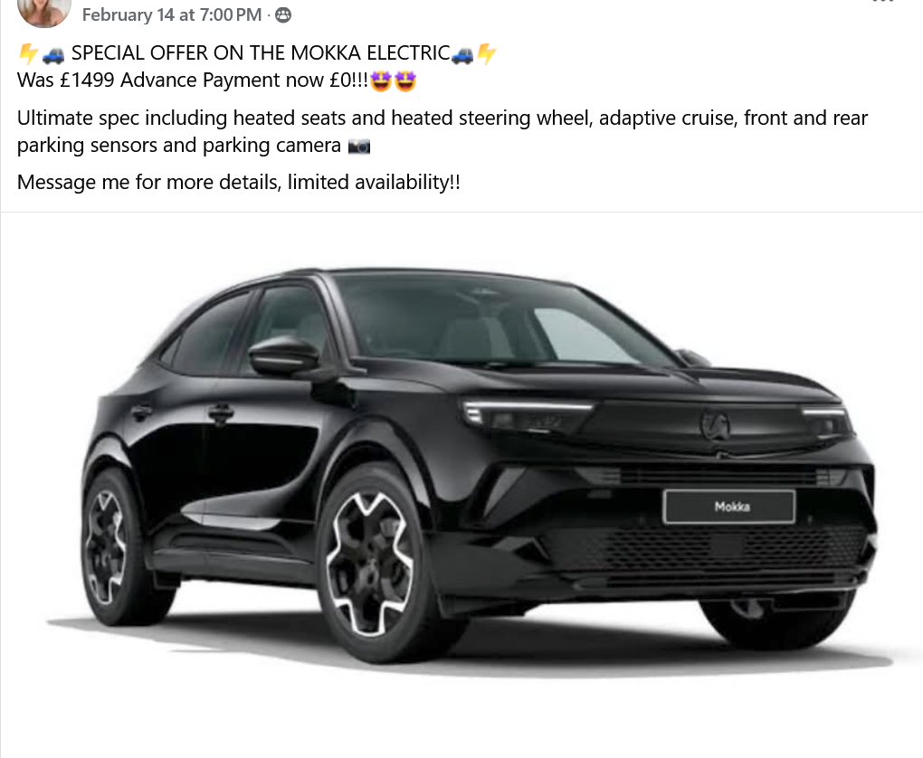 Via usual fb groups posted 14th Feb 25 , Pentagon Vauxhall in Loughborough are offering nil AP (normally £1499) on a limited stock of the Vauxhall Mokka Ultimate (100Kw, 50kWh) EV. Obviously whilst stocks last.