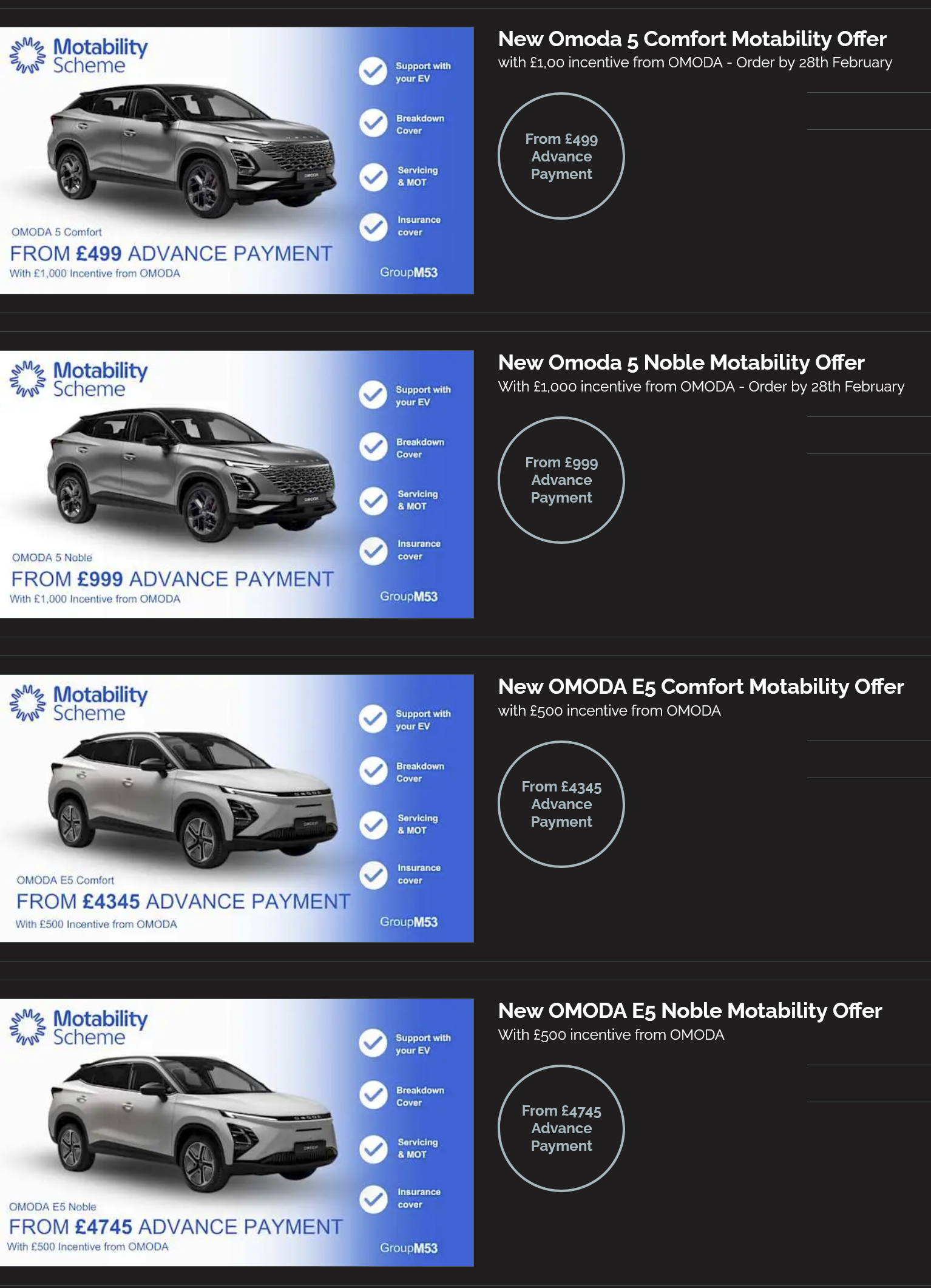 Dealership Motability offer weblink: https://www.groupm53.co.uk/omoda/new-car-offers/search/?pageId=2737886&type%5B%5D=4&make%5B%5D=111021&per_page=all&pageId=2737886