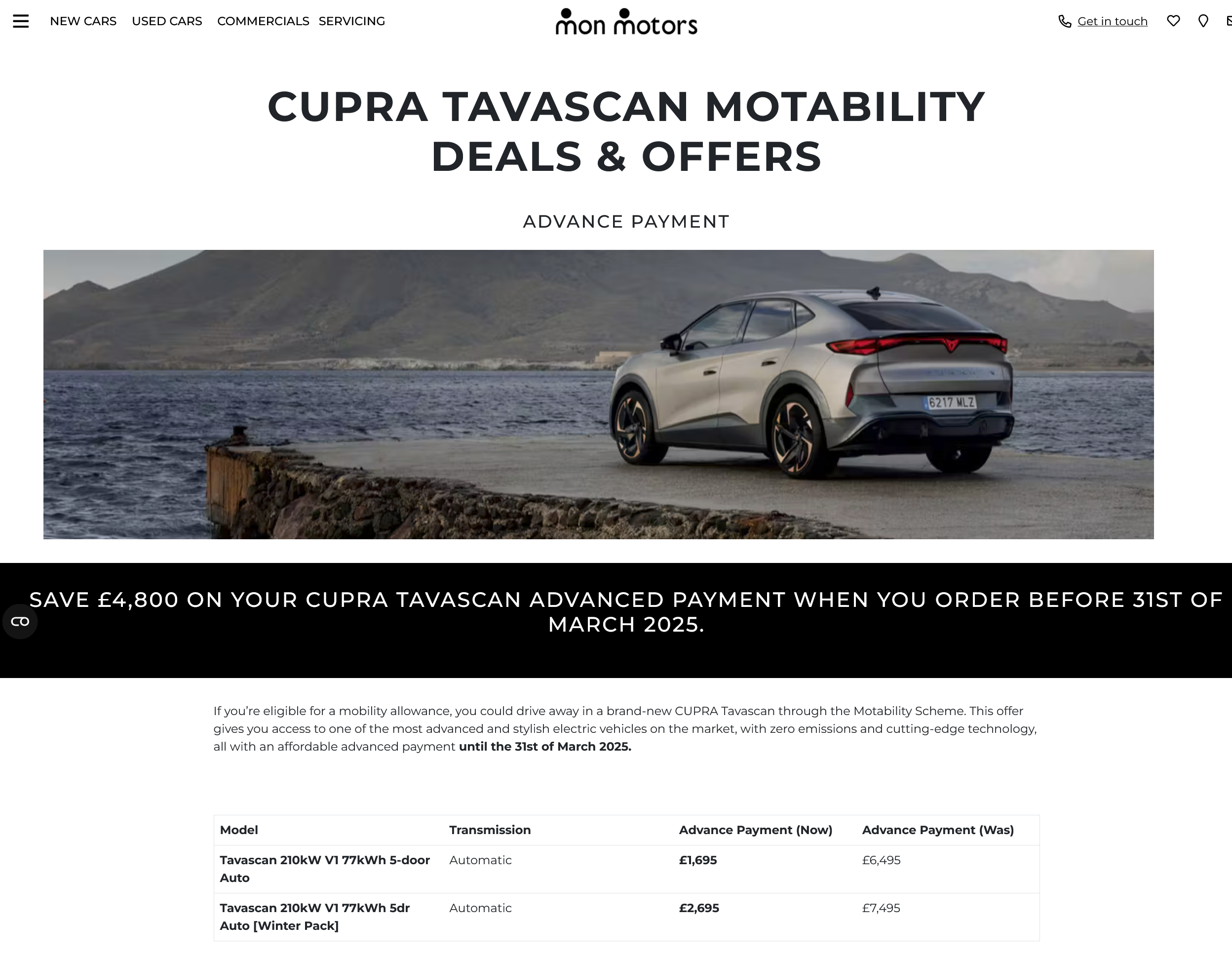 Offer weblink: https://www.monmotors.com/offers/cupra-tavascan-motability/