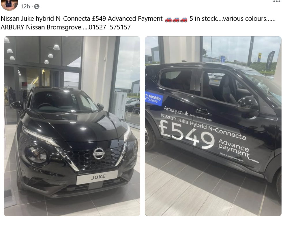 Via the usual fb groups posted yesterday evening 7th March 2025, Arbury Nissan in Bromsgrove, Worcestershire have reduced the AP on 5 stock Nissan Juke Hybrid N-Connecta vehicles from £1049 down to £549. Limited stock only.