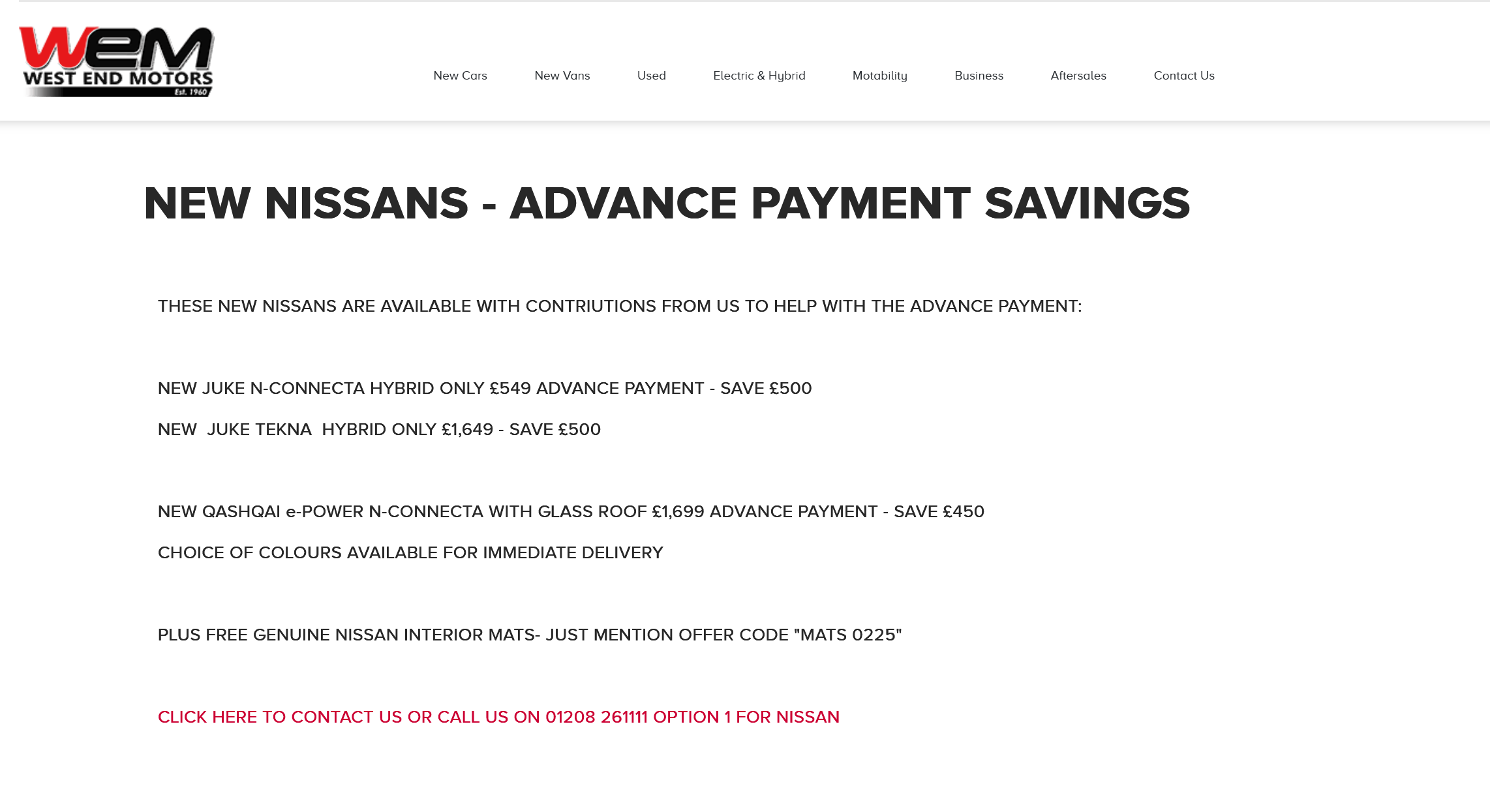 Nissan offers weblink: https://www.westendmotorsbodmin.co.uk/offers/nissan-motability-available-now/