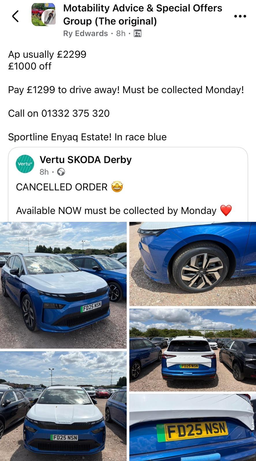 Apologies for briefness and spelling mistakes.Motability Skoda Enyaq SportLine 85x April 2024 (unhappy customer - Ombudsman pending)