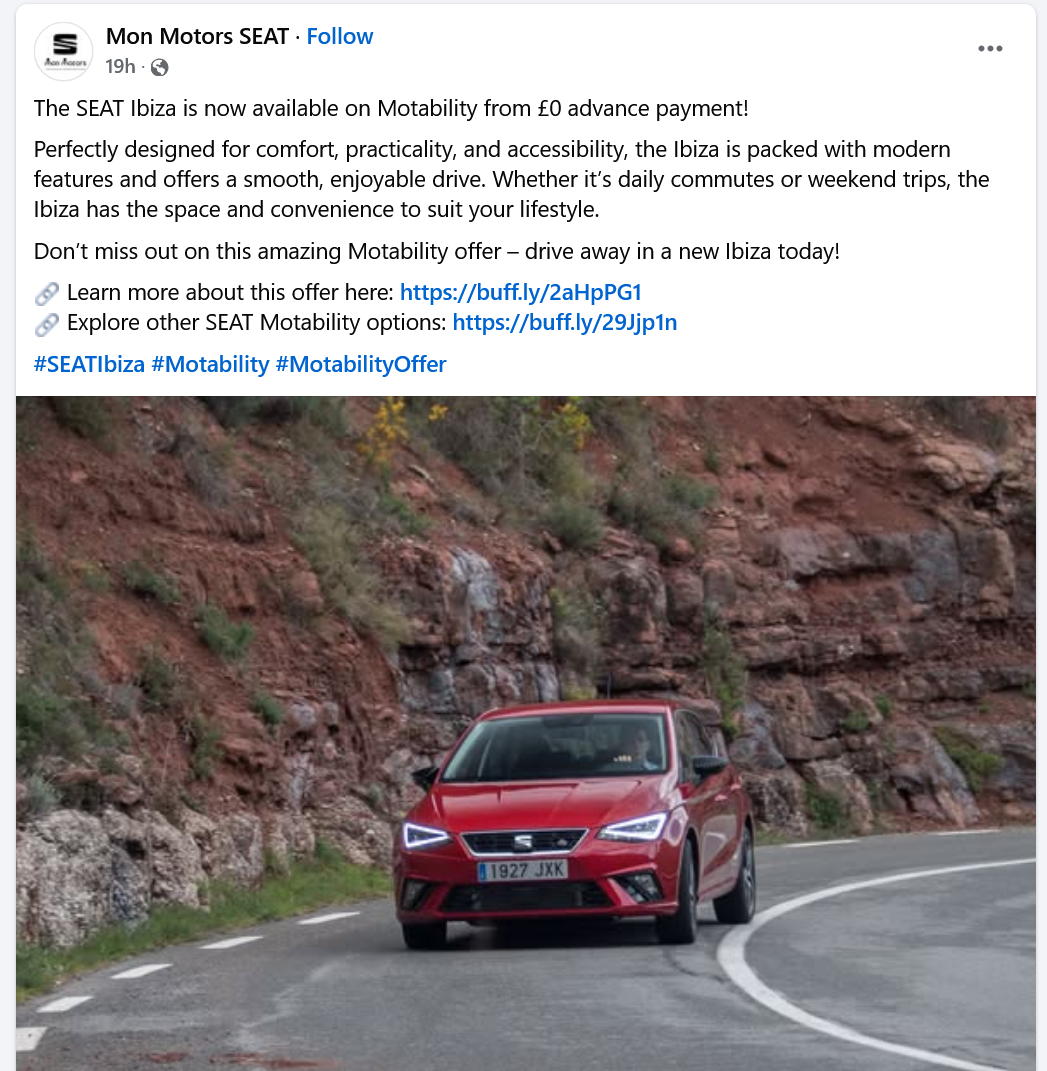 From the dealership’s fb page posted yesterday 15th April 25, Mon Motors Seat in Bristol and Gloucester are offering the Seat Ibiza from Nil AP (range normally starts at £395 AP):