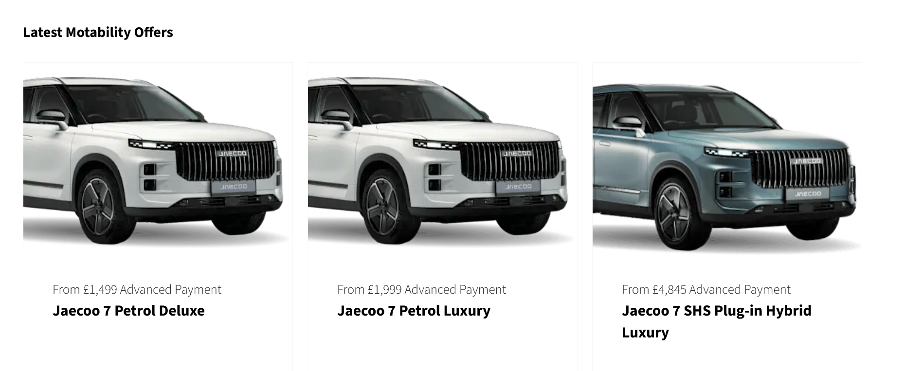 Dealership Motability offer weblink: https://www.richardsonmotorgroup.co.uk/jaecoo/motability/
