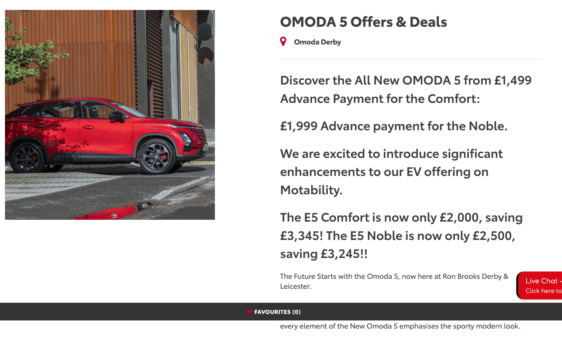 Dealership Motability offer weblink: https://www.ronbrooks.co.uk/caroffers/omoda5-offers-deals/