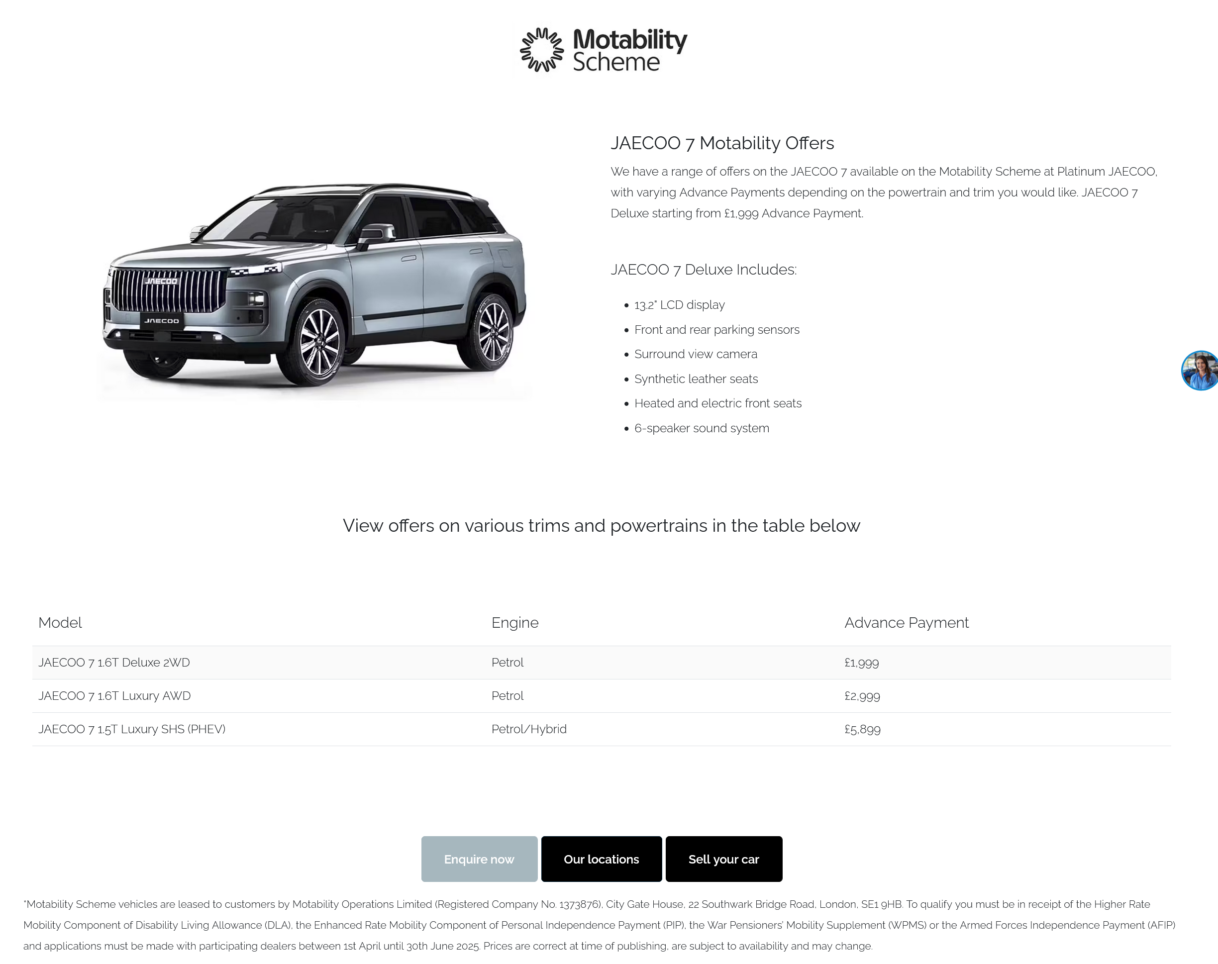 Dealership Motability Offer weblink: https://www.platinummotorgroup.co.uk/omoda-jaecoo/offers/jaecoo-motability/jaecoo-7-motability-offers/