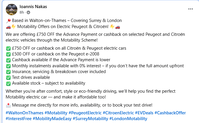 Motability Deals & Special Offers – Q2 2025 (1st April 2025 to 30th June 2025)