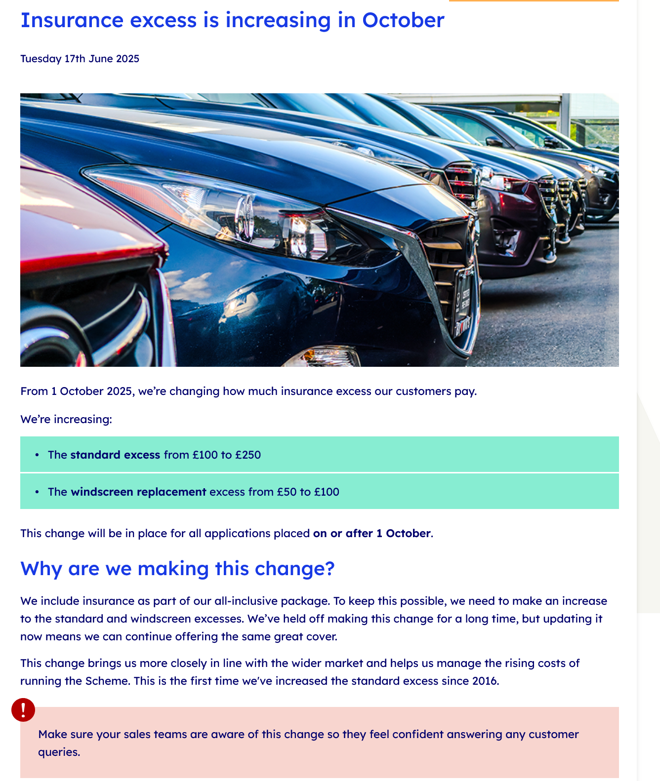 From the ‘other website’ (most know what I mean) posted yesterday 17th June 25, is news that Motability/Direct Line are increasing the standard insurance excess from £100 to £250 for all new lease applications placed on or after 1st October 2025.