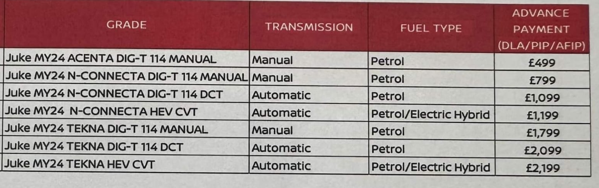 Was a bit of a strange palavour with the price list for the Scenic as well. At first the Techno was available for an AP of £1495, then that spec disappeared from the price list. I contacted motability to ask why and they checked to see if there were any messages from Renault. They then said the reason was a supply issue and that Renault would not be able to supply that spec for the forseeable future. I mentioned that the Techno spec was still showing on the Renault website motability pricelist. The customer service representitive said that Renault had probably not updated their site yet, and that it was better to trust the motability site as it is updated more frequently and is more reliable.