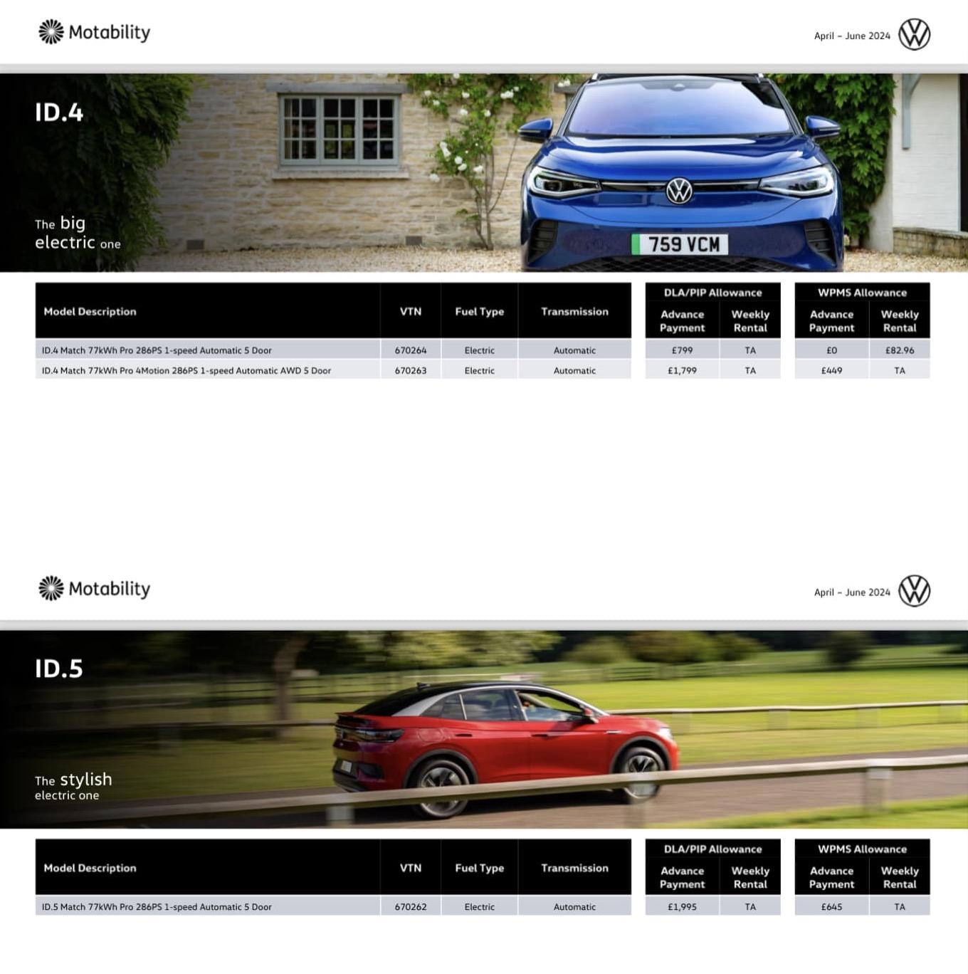 iD4 prices for Q2. £799 77kWh pro match 670264 or £1799 in AWD 670263