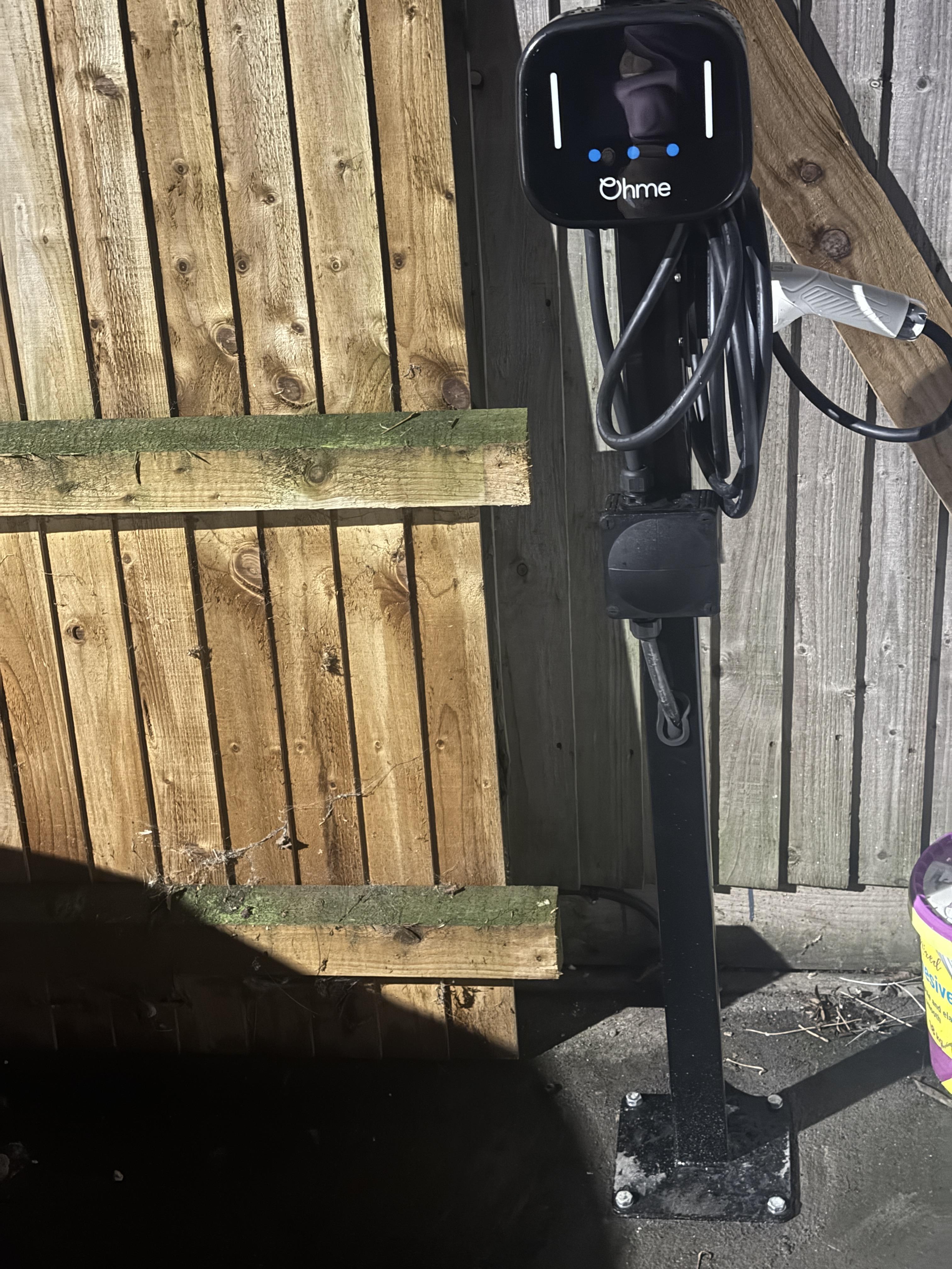 For £1343.00, they would be running the cable from inside my front door (electric box inside) along the bottom of a wall to my driveway ( in front of 5m garden/grass), then digging a small hole, placing a post base, pouring some concrete in and finally fitting and OHME Home Pro post to the base.