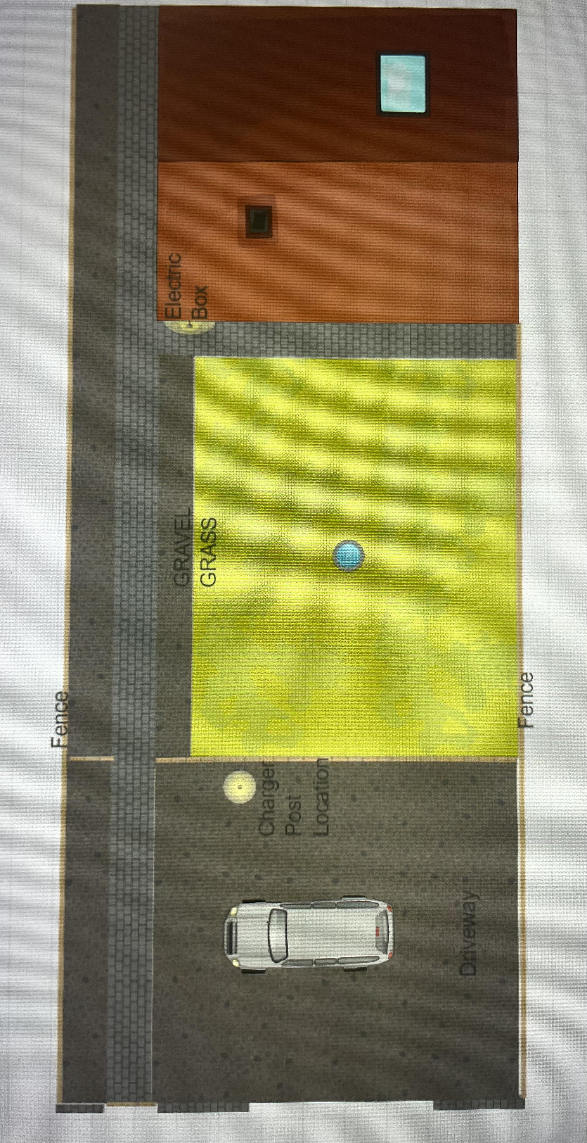 *The diagram/plan below shows where the charge point on the driveway was going to be placed, so the charge point location can now be ignored.