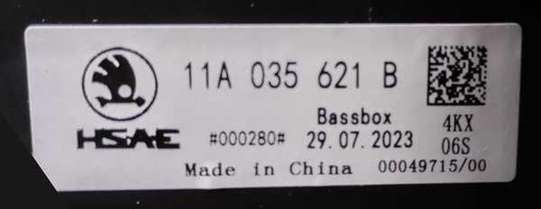 Chap on Briskoda forum was more help, I sent him photos of the unit and where it is, he was surprised it produced any bass at all being enclosed in a polystyrene box and shoved under the floor in a small compartment, there’s very little air for it to move so very little bass.