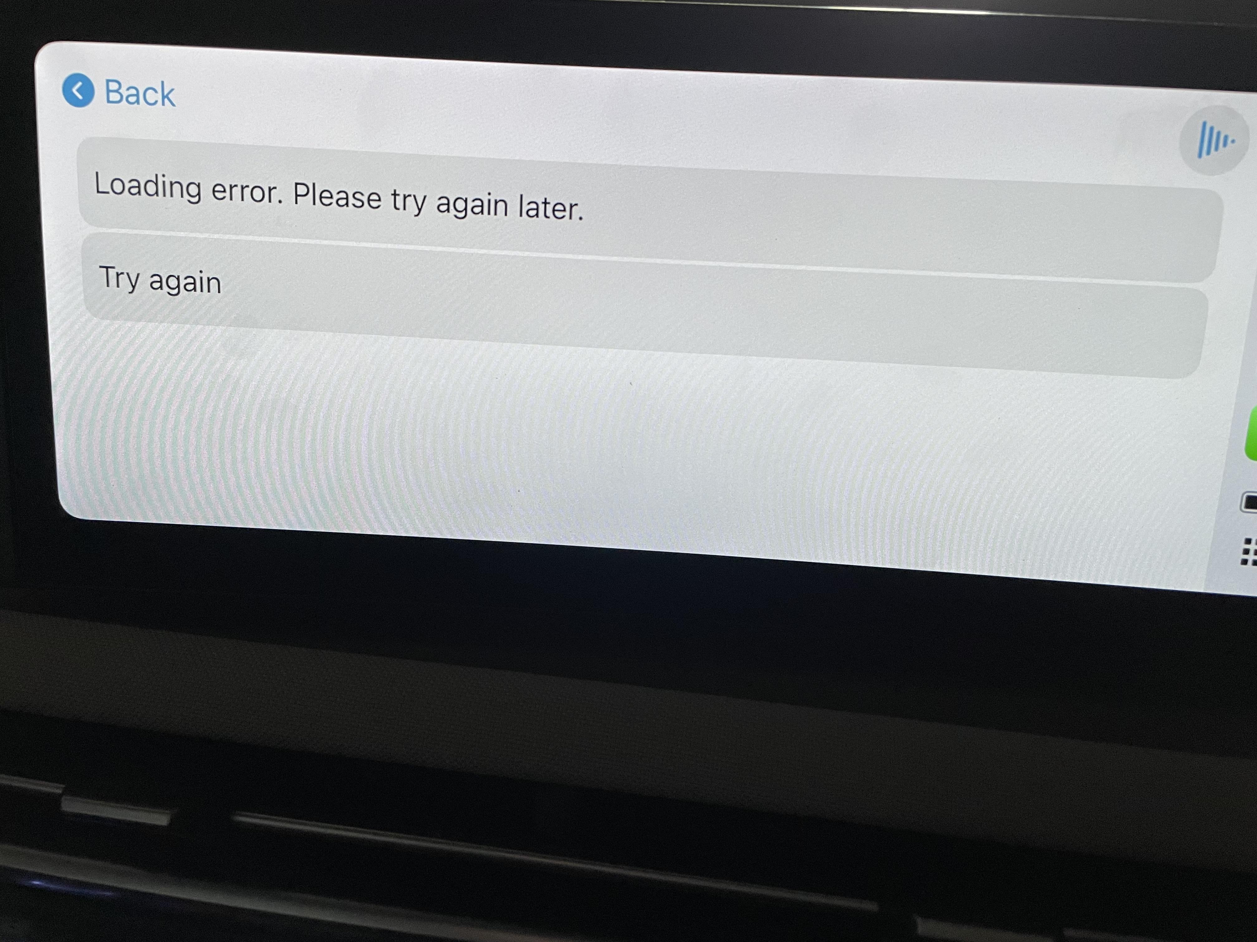 I think it accesses Amazon Music through Apple Car Play. As to whether that’s involving BlueLink I’ve no idea. I get the main menu but when, for example, I select ‘Artists’, I just get this. If I press retry it just sticks with the same message. Sometimes if I get as far as selecting a track it will play something else altogether that isn’t even in my playlist. Hence why I tend to stick with the radio!