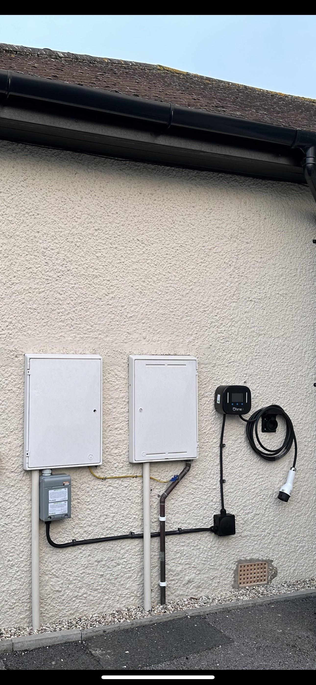 Think the guy that came from ‘plug-in stations’ said they’ll put their stuff in a separate box underneath our electrical box outside. Does that sound correct, or have I misunderstood him? Our boxes are both on the wall outside, and the charger pod is going on the same wall ~2 metres away.